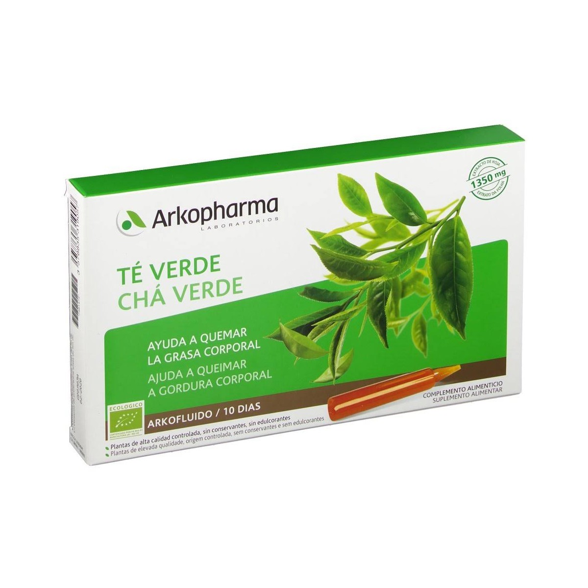 Té Verde 10 Ampollas de Arkopharma es un complemento alimenticio formulado con extracto de hoja del Té Verde, que consigue ayudar a controlar el peso y eliminar los líquidos retenidos.