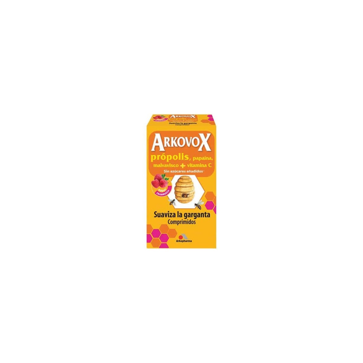 La línea de Arkopharma ra el cuidado de la garganta desarrollada a base de própolis se llama Arkovox Además de Jarabe y Spray ahora Arkopharma presenta su Arkovox Própolis con Vitamina C Sabor Frambuesa 24 Comprimidos. Es un complemento alimenticio que ayuda a suavizar la garganta y la tos asociada a las molestias en la garganta. Gracias a su composición con extracto de malvavisco y de papaína. Además, posee vitamina C que refuerza las defensas y suaviza la garganta. Están deliciosos y son Ideal para personas adultas y niños mayores de 6 años.