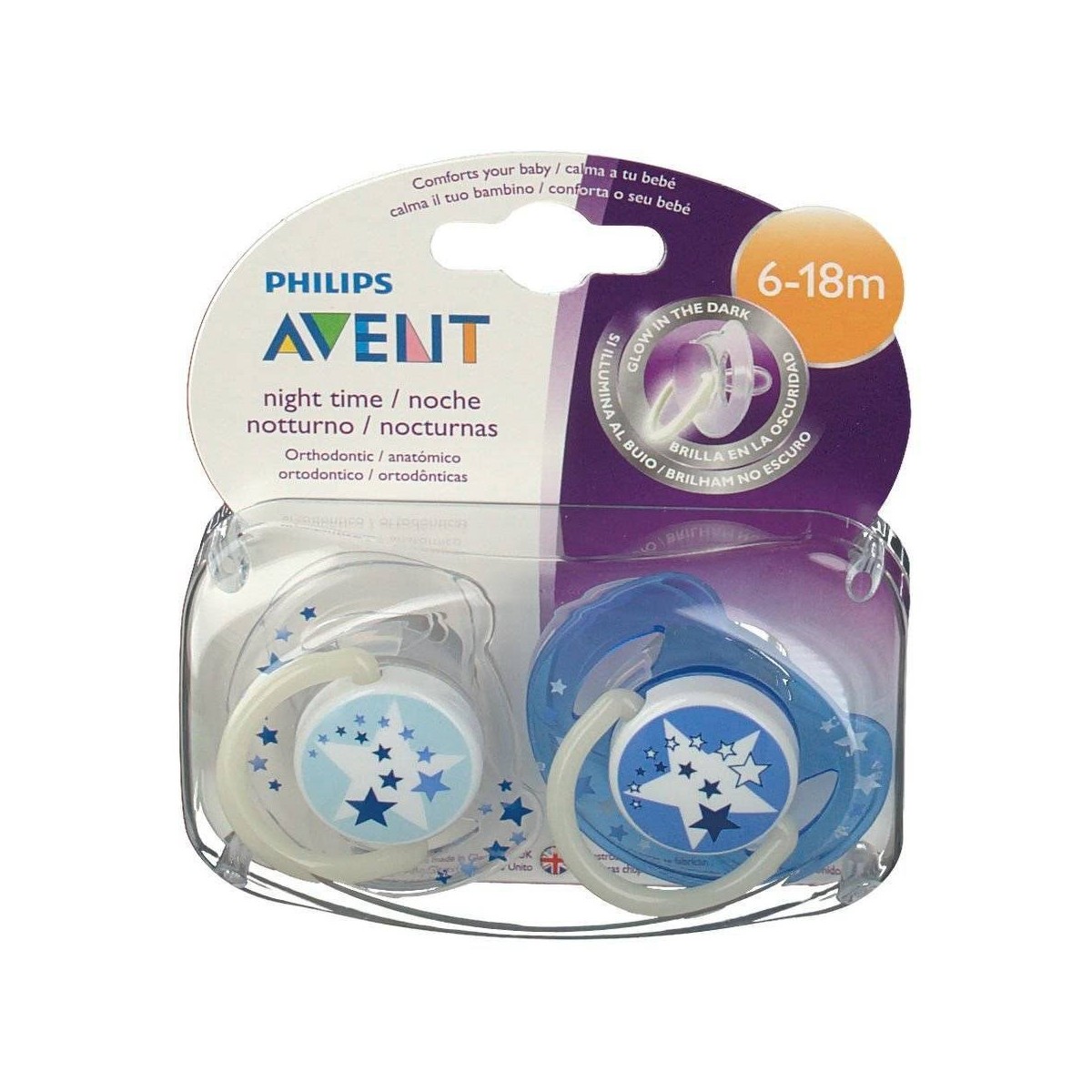 Calme a su bebé a la hora de dormir al bebé con el chupete Philips Avent Classic Nocturno: su anilla que brilla en la oscuridad hace que sea más fácil encontrarlo de noche. Mientras duerme, nuestras tetinas ortodónticas respetan el desarrollo oral del bebé.