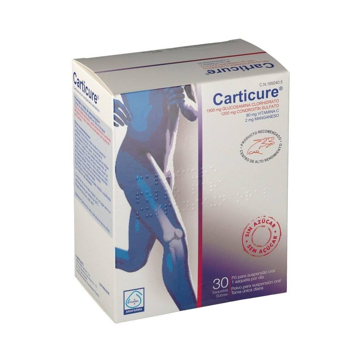Carticure está compuesto a base de glucosamina (1500mg) y condroitin sulfato (1200mg), componentes esenciales de la estuctura del cartílago y otros tejidos conectivos.