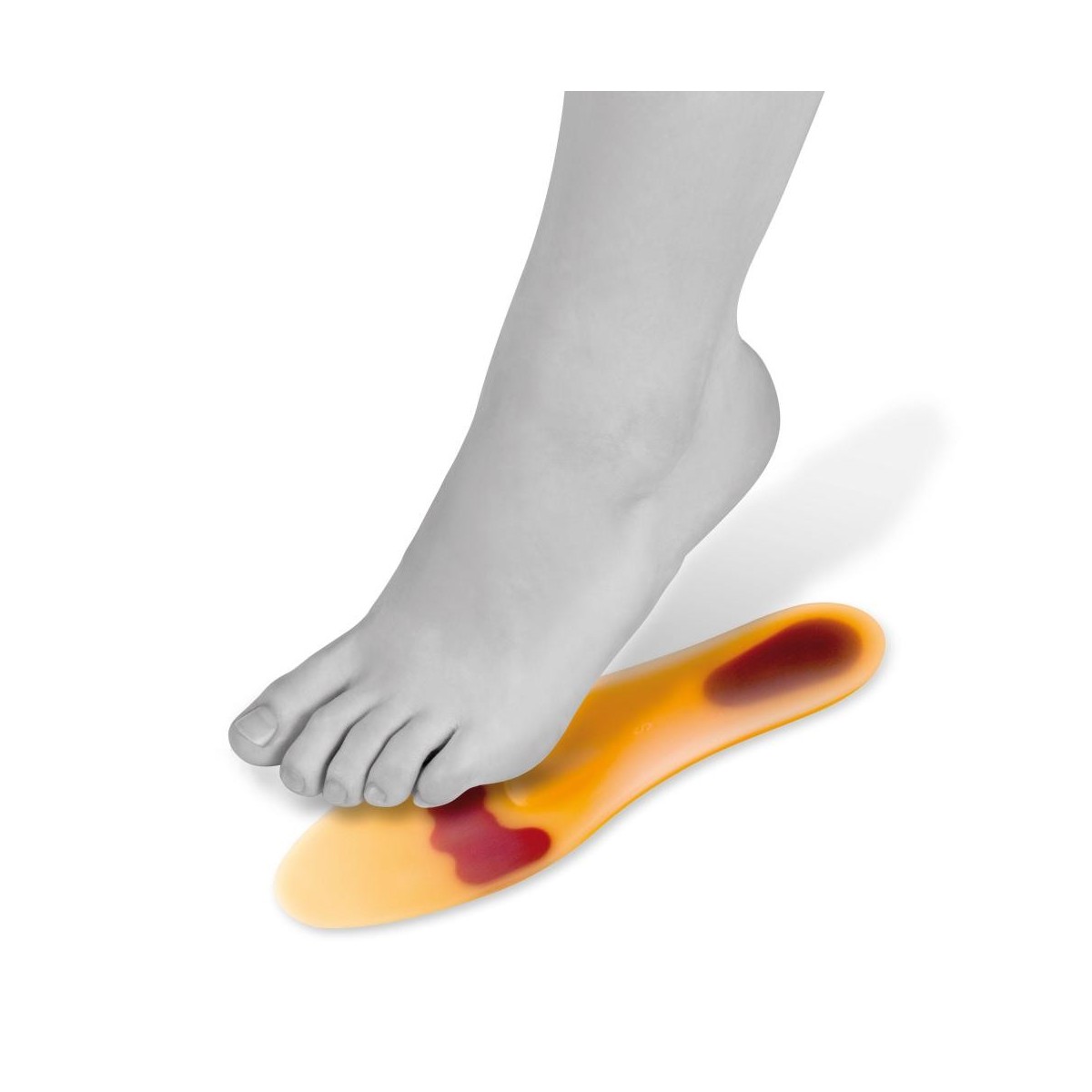 Estas plantillas están fabricadas en dos densidades para absorber los impactos y los choques contra el suelo al caminar. Proporcionan alivio y confort inmediato al evitar la presión en la zona del talón y metatarsos.