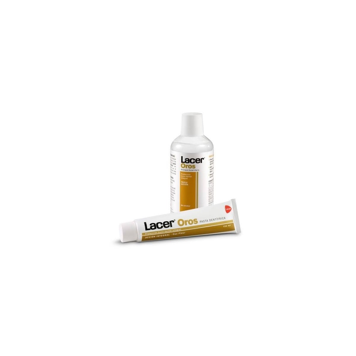 Lacer Oros Colutorio de 200 ml es un enjuague indicado para la higiene y protección buco-dental. Lacer Oros contiene principios activos con propiedades para la prevención y del sangrado de encías, la caries, además de ser antiséptico y desensibilizante que ayuda a la reducción de la placa dental. El Triclosán, agente antimicrobiano eficaz y con un gran espectro de acción, en conjunto con el zinc, reductor de la formación de placa y desarrollo de sarro, combaten la placa bacteriana.