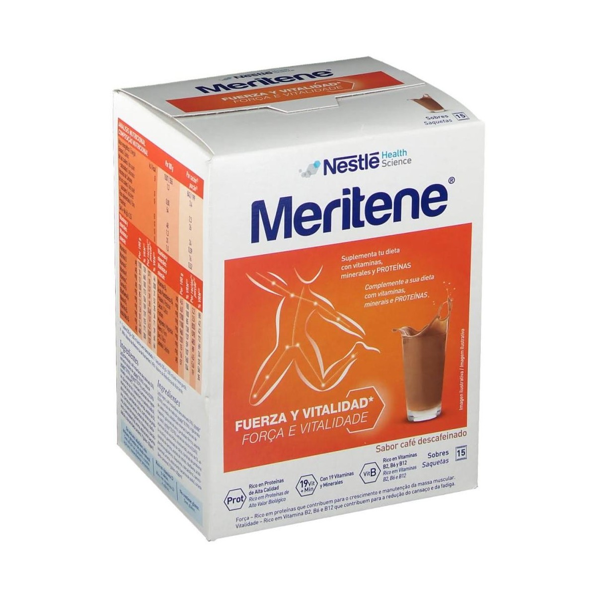 Meritene contiene nutrientes que te pueden ayudar a completar la alimentación y a sentirte más fuerte y vital mientras saboreas un rico batido sabor de café descafeinado.Por eso, es especialmente útil para suplementar la alimentación c