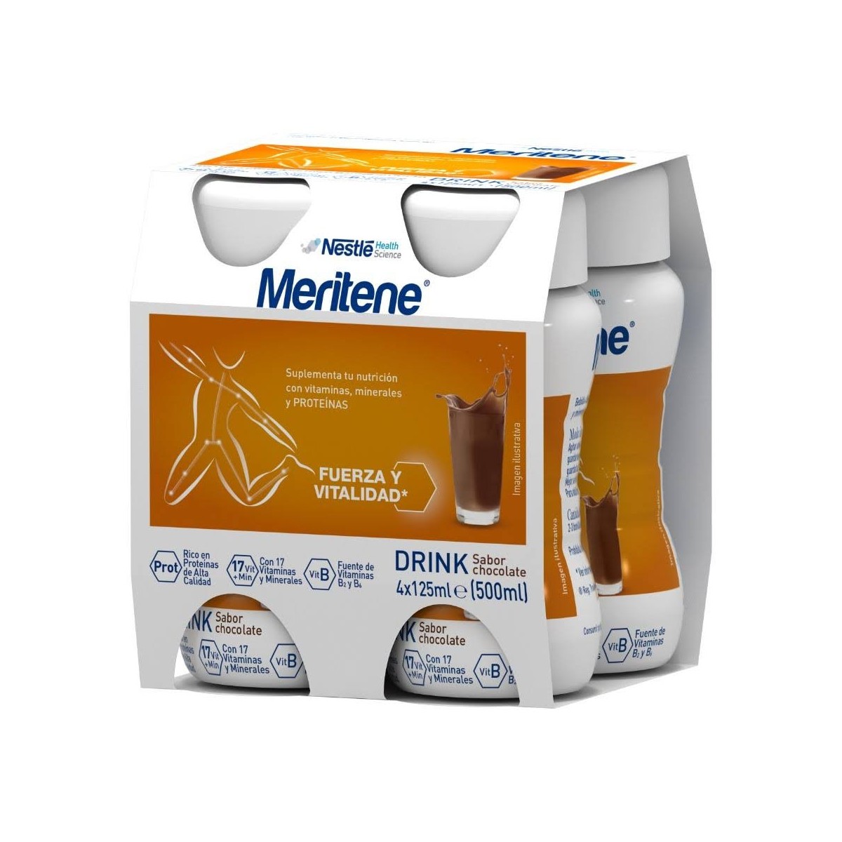 Meritene Drink Chocolate 125ml 4 Unidades un formato para tomar un batido diario que completa con 11, proteínas más 17 vitaminas y minerales una fuente de vitaminas B2 y B6, con un sabor agradable chocolate podrás llevarlo a cualquier lugar. Siempre he tara antes de usar para tomar Oviedo frío o a temperatura ambiente. Dura 24 horas una vez abierto. Podrás tomar de 2 a 3 diarios.