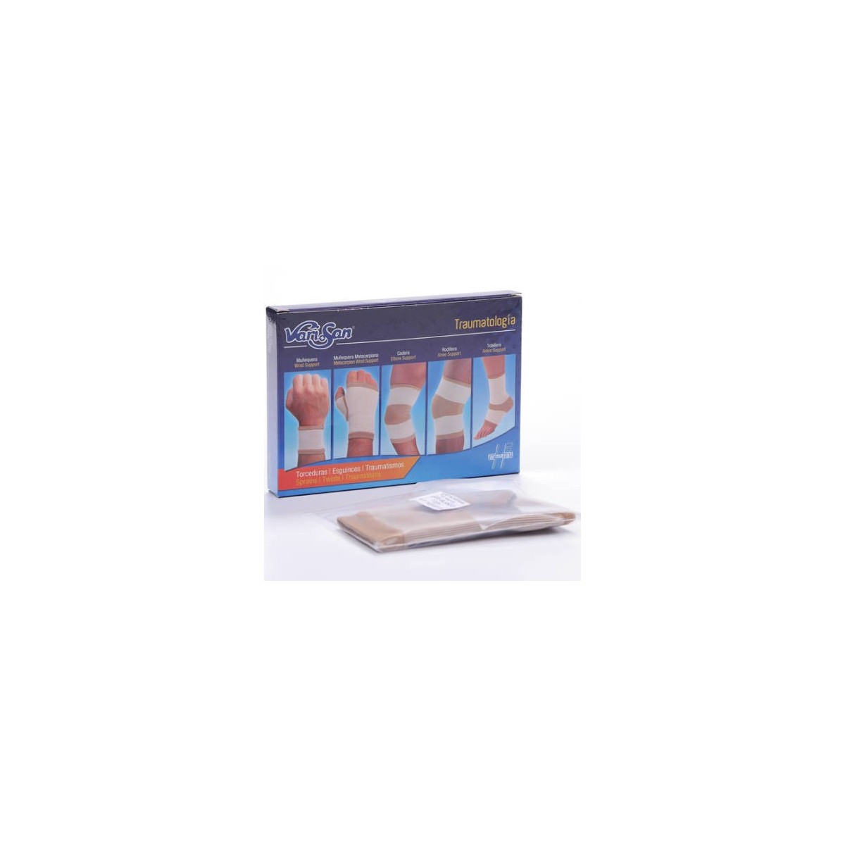 Muñequera metacarpiana contentiva, con sujeción en la zona metacarpiana, elástica en un solo sentido.