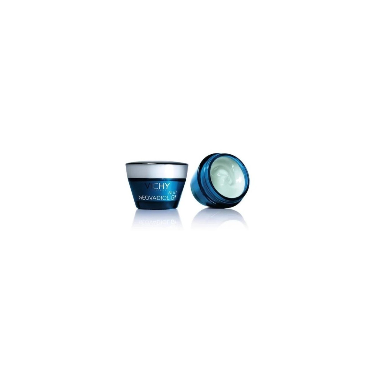 Vichy Neovadiol Gf Noche es un tratamiento densificador de noche que estimula los factores de crecimiento naturales de la piel, potentes reconstructores tisulares, consiguiendo construir con mayor rapidez unos tejidos más densos y más estructurados. Para todo tipo de piel en personas con pérdida de densidad cutánea y de las proporciones del rostro, acentuadas por la ralentización hormonal. Vichy Neovadiol Gf Noche Neovadiol Gf Noche de Vichy es un tratamiento densificador de noche que estimula los factores de crecimiento naturales de la piel, potentes reconstructores tisulares, consiguiendo construir con mayor rapidez unos tejidos más densos y más estructurados. Crema confortable, no grasa y no pegajosa. RESULTADOS Pómulos modelados, cuello estilizado, óvalo redefinido. Rostro reproporcion