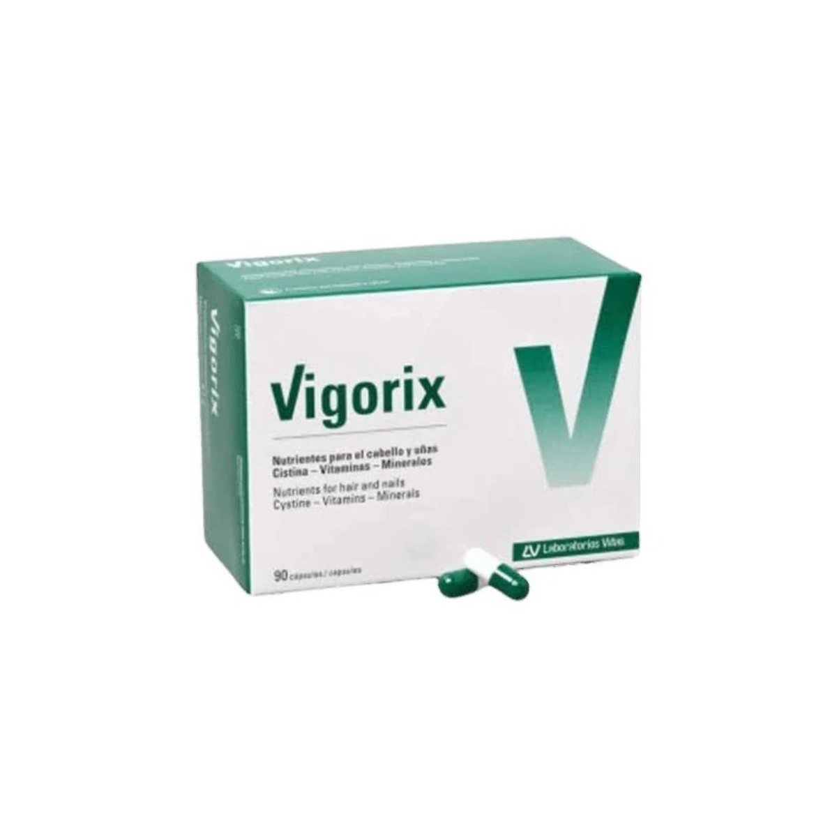En total son 180 cápsulas Vigorix es un complemento alimenticio con una equilibrada combinación de elementos para la nutrición de cabello y uñas. Vigorix contiene: L-cistina, ácido pantoténico, vitamina B6, biotina, hierro y zinc. Una adecuada ingesta de zinc es uno de los factores de ayuda para mantener cabello y uñas en óptimas condiciones.