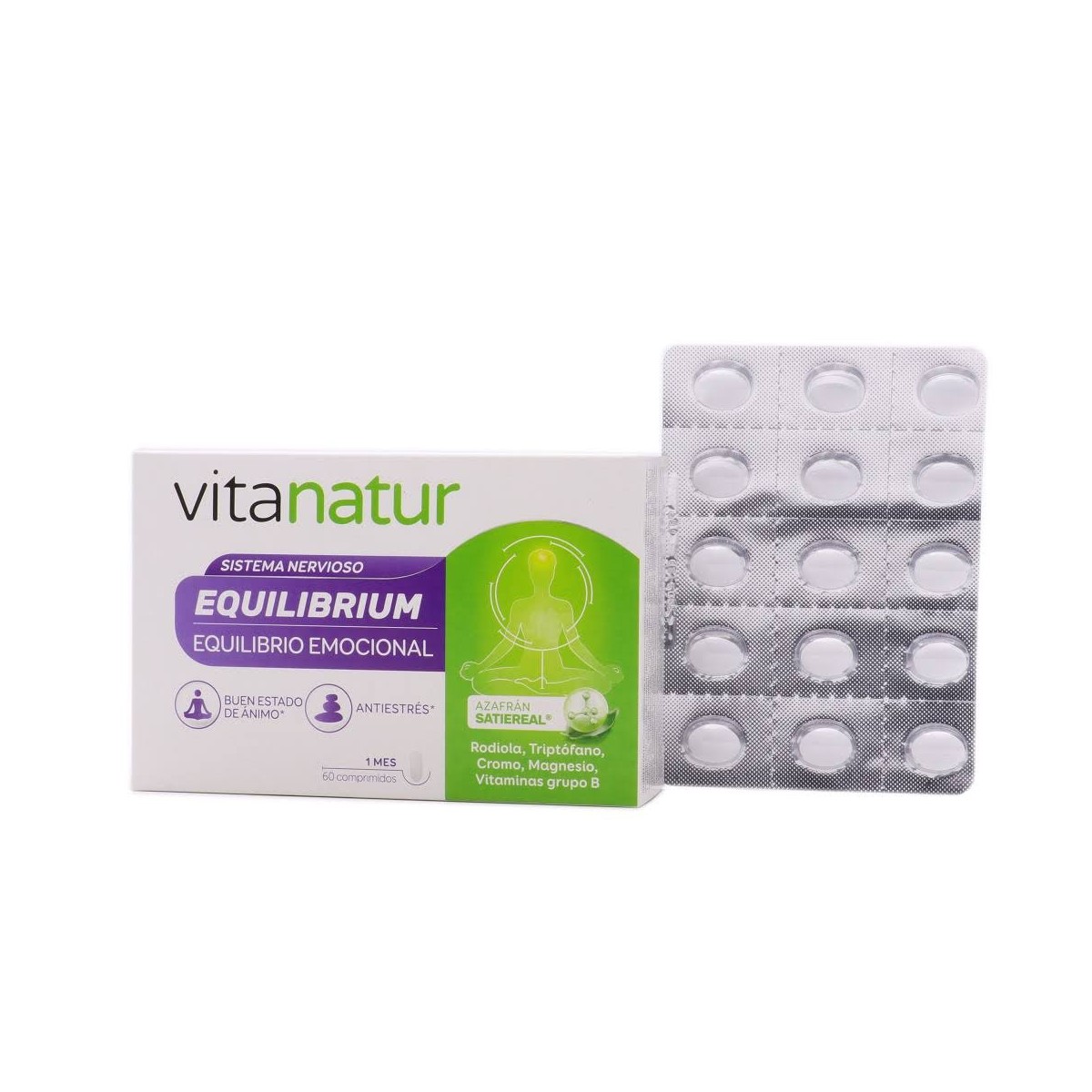 Vitanatur Equilibrium 60 Comprimidos Complemento vitamnico especialmente diseado para contribuir en nuestro nimo emocional en situaciones en las que te embarga la negatividad, de ansiedad o de estrs. Gracias a su frmula a base de vitamina B y magnesio, es capaz de aportar el equilibrio que necesita tu salud emocional y mental, adems de contribuir tambin en un aporte extra de energa y a sentirte mejor en el da a da. Se recomienda tomar durante 2 meses y descansar 1 mes. Tomar 2 comprimidos al da.